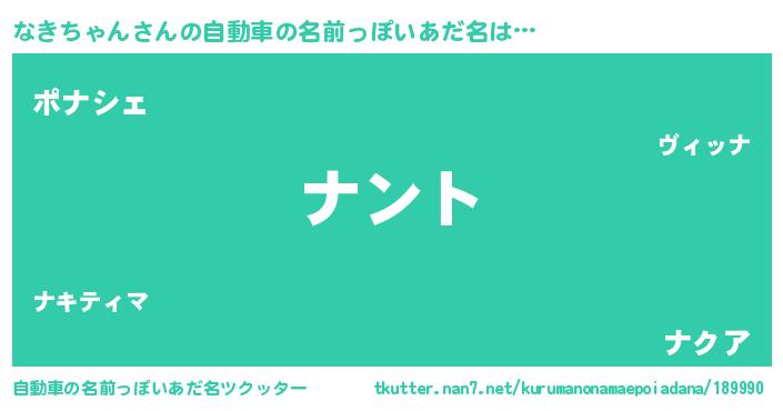 | 男性向けラノベタイトル風あだ名 | 『なきちゃんの嫁は女の子じゃないと思った?』 |