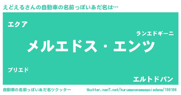 | 男性向けラノベタイトル風あだ名 | 『Re:えどえるから始める異世界生活』 |