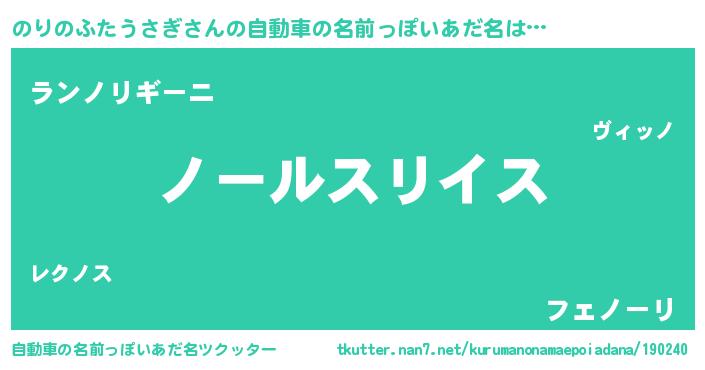 | 男性向けラノベタイトル風あだ名 | 『転生したらのりのふたうさぎだった件』 |