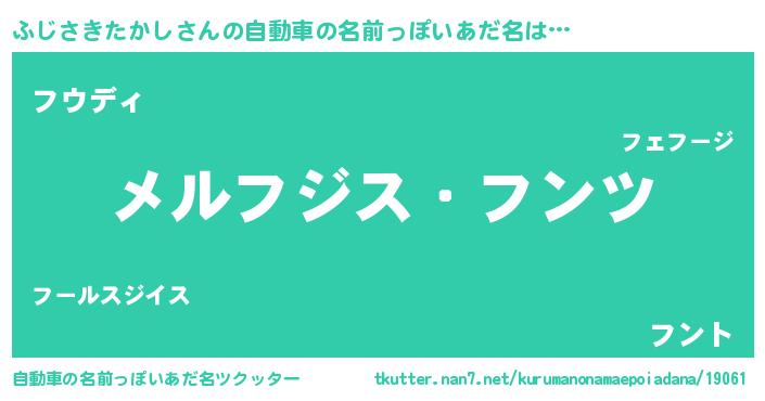 | 男性向けラノベタイトル風あだ名 | 『Re:ふじさきたかしから始める異世界生活』 |