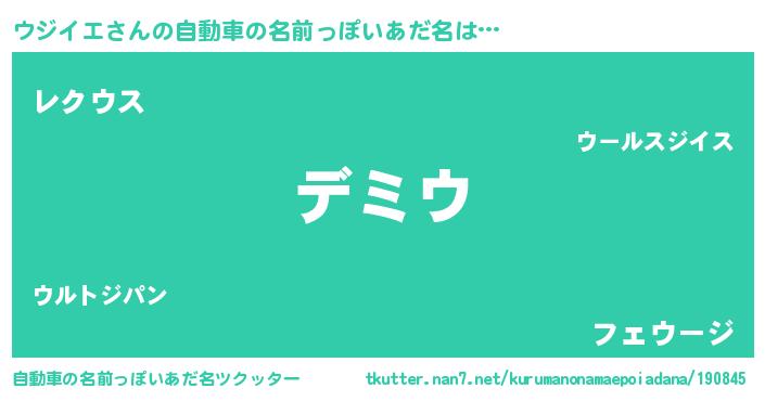 | 男性向けラノベタイトル風あだ名 | 『ウジイエという概念が存在しない退屈な世界 』 |