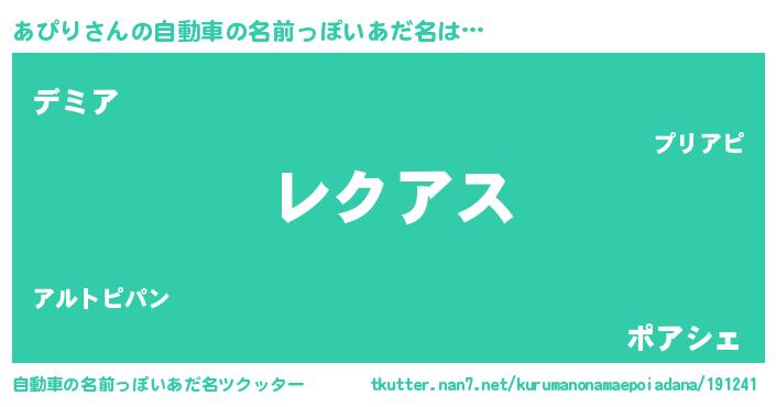 | 意味不明あだ名 | 『自称あぴり』『永久保存あぴり』 |