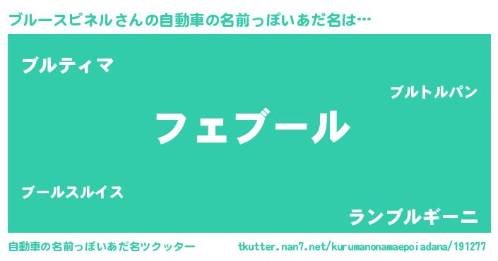 | 欧米人風あだ名 | 『ブルースピネル・ステッグマイヤー』 |