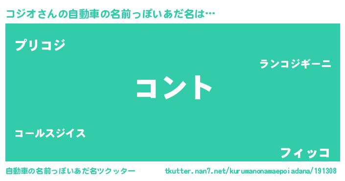 コジオさんの自動車の名前っぽいあだ名をツクッター!