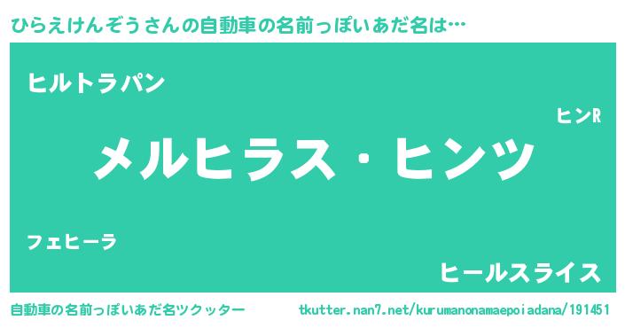 | 男性向けラノベタイトル風あだ名 | 『Re:ひらえけんぞうから始める異世界生活』 |