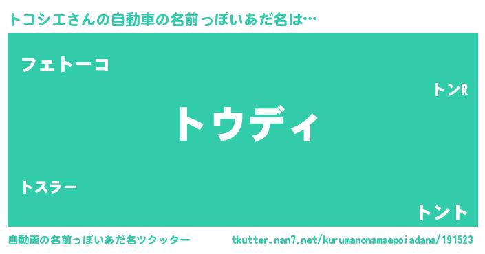 | 意味不明あだ名 | 『住所不定無職トコシエ(98歳)』 |