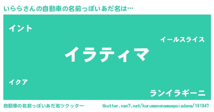| ファンタジー風あだ名 | 『イラフェル』『ファントムイラス』 |