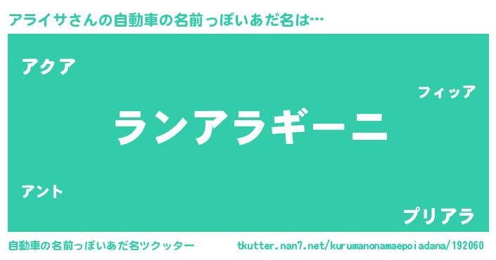 | 欧米人風あだ名 | 『アンジェラ・アライサ』 |
