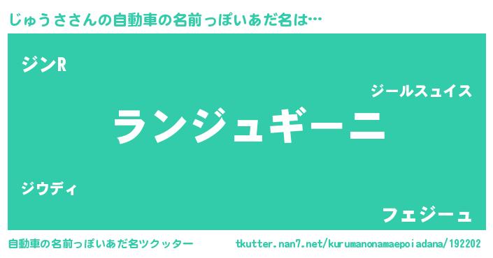 | 男性向けラノベタイトル風あだ名 | 『じゅうさに滅ぼされるだけの簡単なお仕事です』 |
