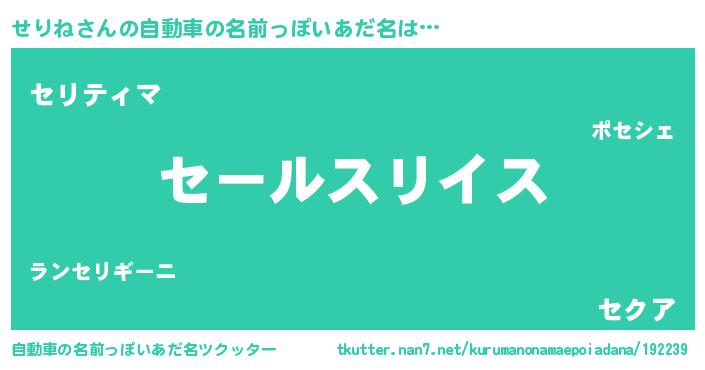 | 男性向けラノベタイトル風あだ名 | 『セリネスレイヤー』 |