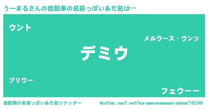 | ヘコむあだ名 | 『うーまる(苦笑)』『うーを』 |