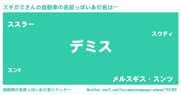 | 胡散臭い通販商品みたいなあだ名 | 『来世でも幸せになれる健康食品…その名も「スギガミ」』 |