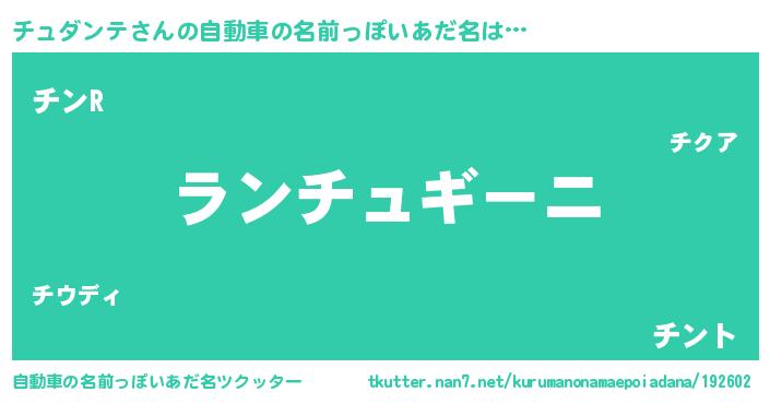 | 男性向けラノベタイトル風あだ名 | 『チュダンテに滅ぼされるだけの簡単なお仕事です』 |