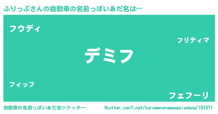 | 胡散臭い通販商品みたいなあだ名 | 『来世でも幸せになれる水素水…その名も「ふりっぷ」』 |