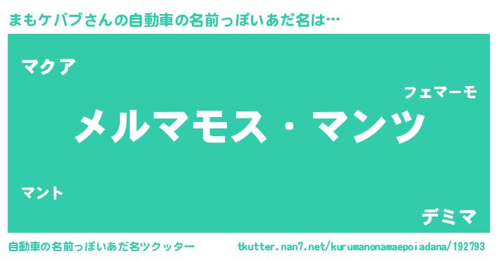 | 男性向けラノベタイトル風あだ名 | 『Re:まもケバブから始める異世界生活』 |