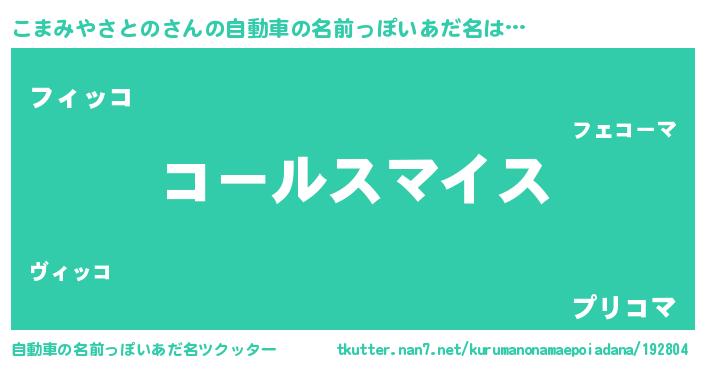 | 男性向けラノベタイトル風あだ名 | 『コマミヤサトノスレイヤー』 |