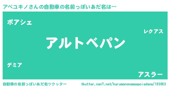 | 欧米人風あだ名 | 『ウサインアベユキノ』 |