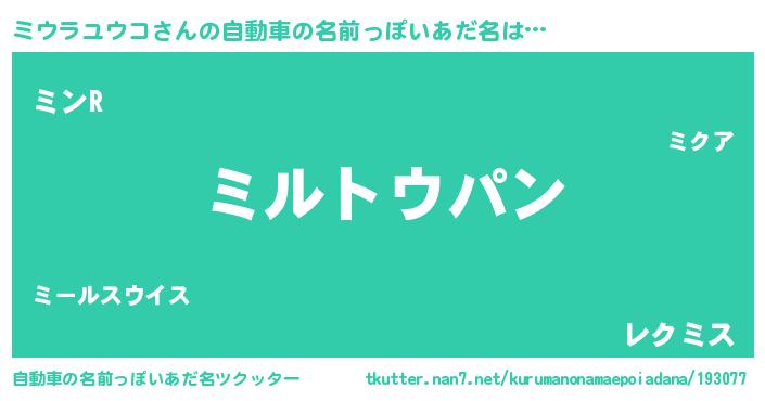 | 欧米人風あだ名 | 『ウサインミウラユウコ』 |