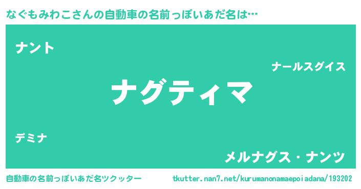 | ポケモン風あだ名 | 『ナグチュウ』『ヒナグモミワコ』 |