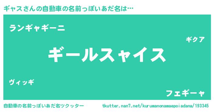 | 男性向けラノベタイトル風あだ名 | 『ギャス~年齢イコール彼女いない歴の魔法使い~』 |