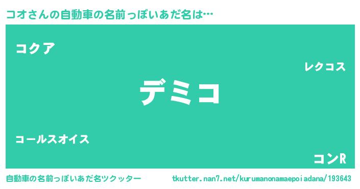 | ファンタジー風あだ名 | 『コオディッシュ』『エターナルコオー』 |