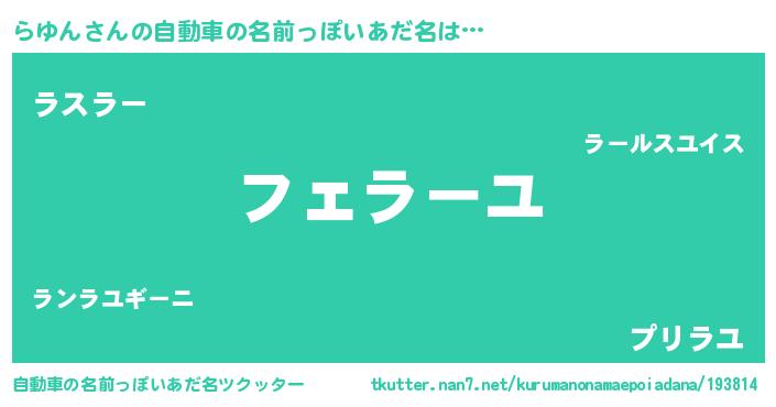 | 意味不明あだ名 | 『らゆんフォーエバー』『ペロリンらゆん』 |
