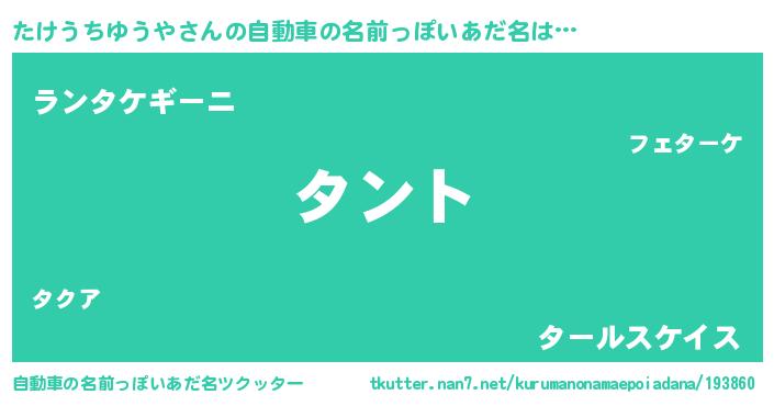 | 男性向けラノベタイトル風あだ名 | 『たけうちゆうやの嫁は女の子じゃないと思った?』 |