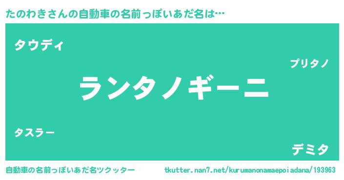 | 欧米人風あだ名 | 『アンジェラ・たのわき』 |