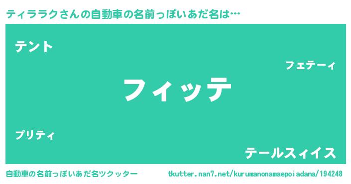 | 男性向けラノベタイトル風あだ名 | 『おまえをオタクにしてやるから、俺をティララクにしてくれ! 』 |