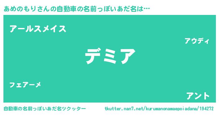 | ヘコむあだ名 | 『あめのもり(小並感)』『あめっ子』 |