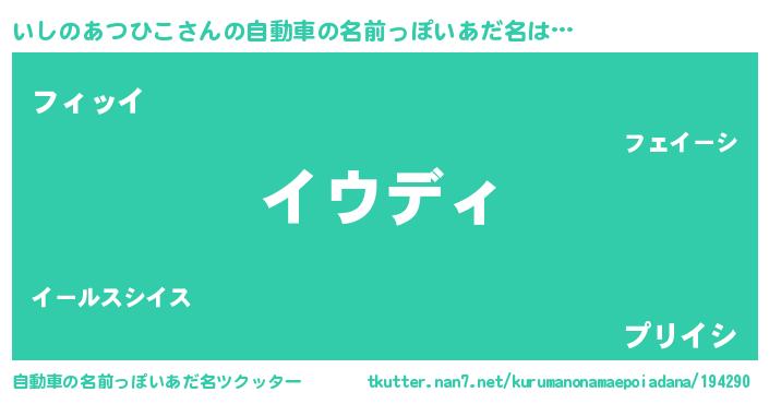 | 男性向けラノベタイトル風あだ名 | 『魔弾の王といしのあつひこ』 |
