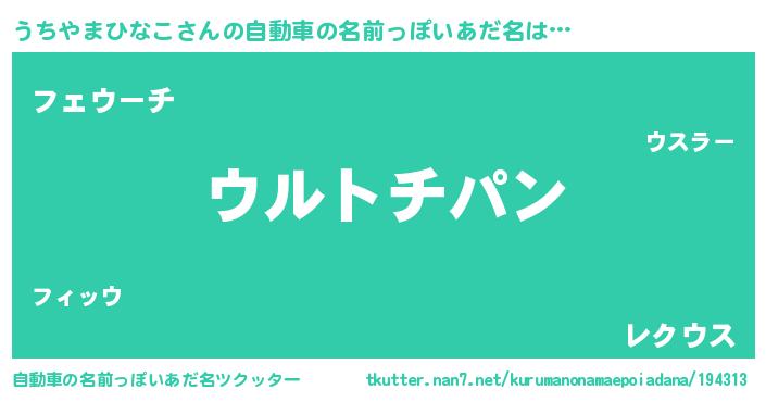 | 欧米人風あだ名 | 『ウサインうちやまひなこ』 |