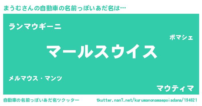 | 男性向けラノベタイトル風あだ名 | 『まうむ~年齢イコール彼女いない歴の魔法使い~』 |