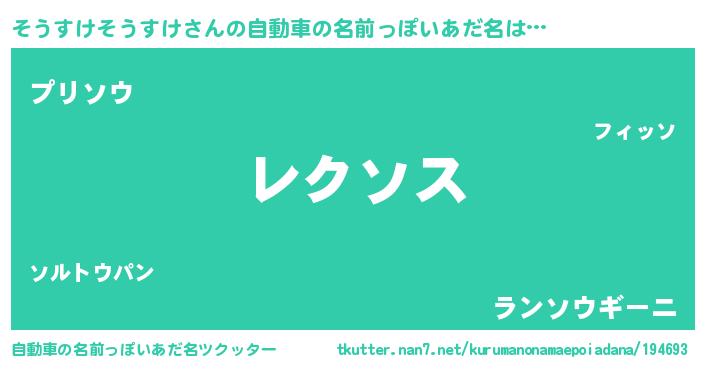 そうすけそうすけさんの自動車の名前っぽいあだ名をツクッター!