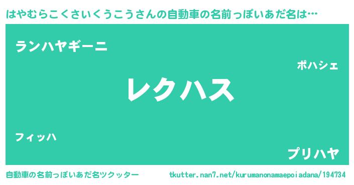 | 恥ずかしいあだ名 | 『ハヤムラコクサイクウコウデラックス』 |
