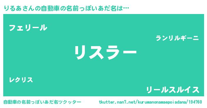 | ヘコむあだ名 | 『なまこ酢』『りるあ(笑)』『りるを』 |