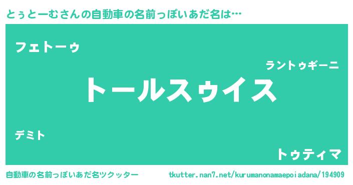 | ヒーロー風カッコイイあだ名 | 『スーパートゥトーム』『ネオトゥトーム』 |