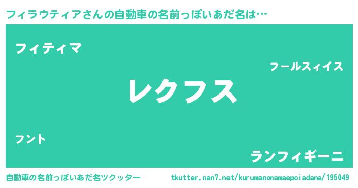 | 意味不明あだ名 | 『自称フィラウティア』 |