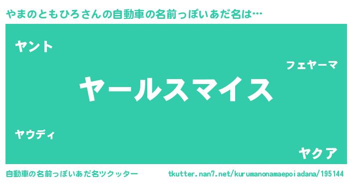 | 女子向けラノベタイトル風あだ名 | 『やまのともひろの玉の輿計画!』 |