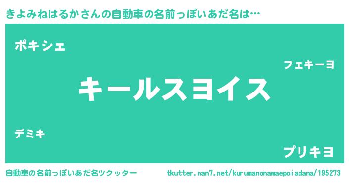 | 男性向けラノベタイトル風あだ名 | 『きよみねはるか~年齢イコール彼女いない歴の魔法使い~』 |