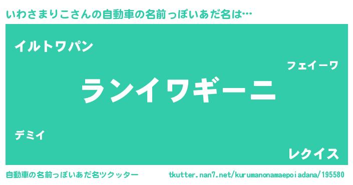 | 欧米人風あだ名 | 『アンジェラ・いわさまりこ』 |