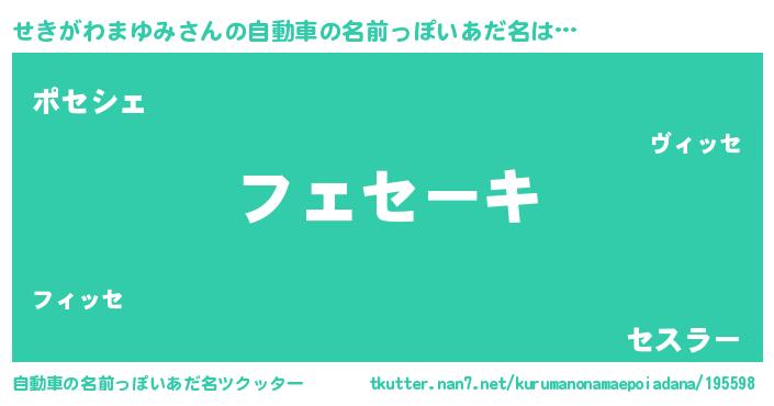 | 意味不明あだ名 | 『住所不定無職せきがわまゆみ(79歳)』 |