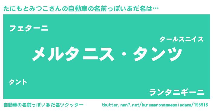 | ポケモン風あだ名 | 『タニセウス』『メロタッニ』 |