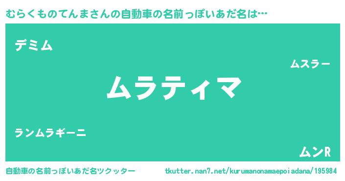 | 男性向けラノベタイトル風あだ名 | 『ムラクモノテンマアートオンライン』 |