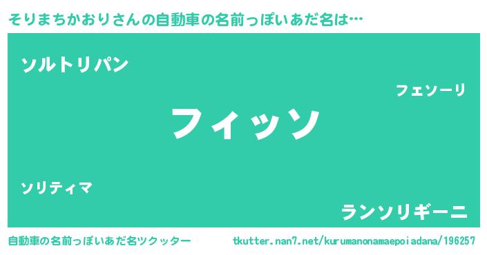 | ポケモン風あだ名 | 『ソックウザ』『ヒソリマチカオリ』 |