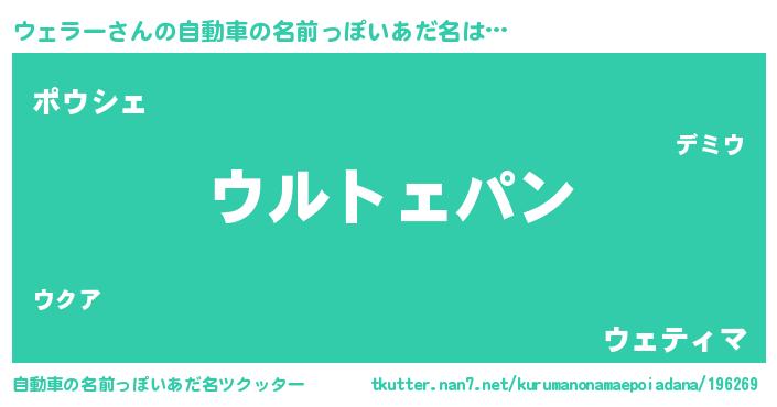 | 意味不明あだ名 | 『とにかく怪しいウェラー』 |