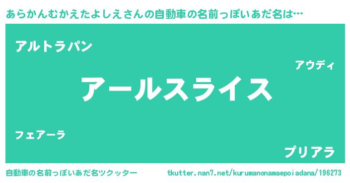 | 胡散臭い通販商品みたいなあだ名 | 『信頼と実績のサプリメント…その名も「あらかんむかえたよしえ」』 |