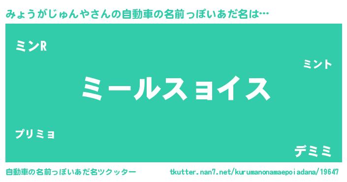 | 男性向けラノベタイトル風あだ名 | 『転生したらみょうがじゅんやだった件』 |