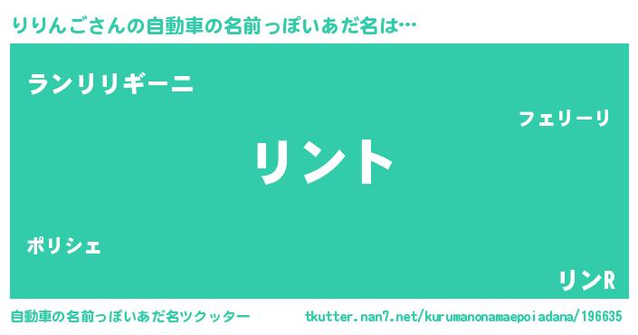 | 男性向けラノベタイトル風あだ名 | 『りりんごの嫁は女の子じゃないと思った?』 |