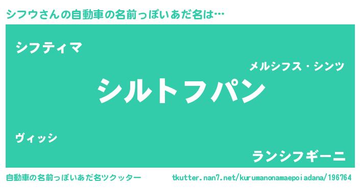| 意味不明あだ名 | 『とにかく怪しいシフウ』『自称シフウ』 |